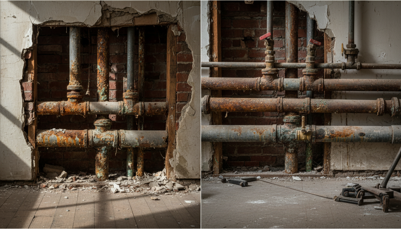 Occasional leaks happen. But repeated pipe repairs are a major red flag — especially in buildings with old galvanized steel or cast iron pipes.